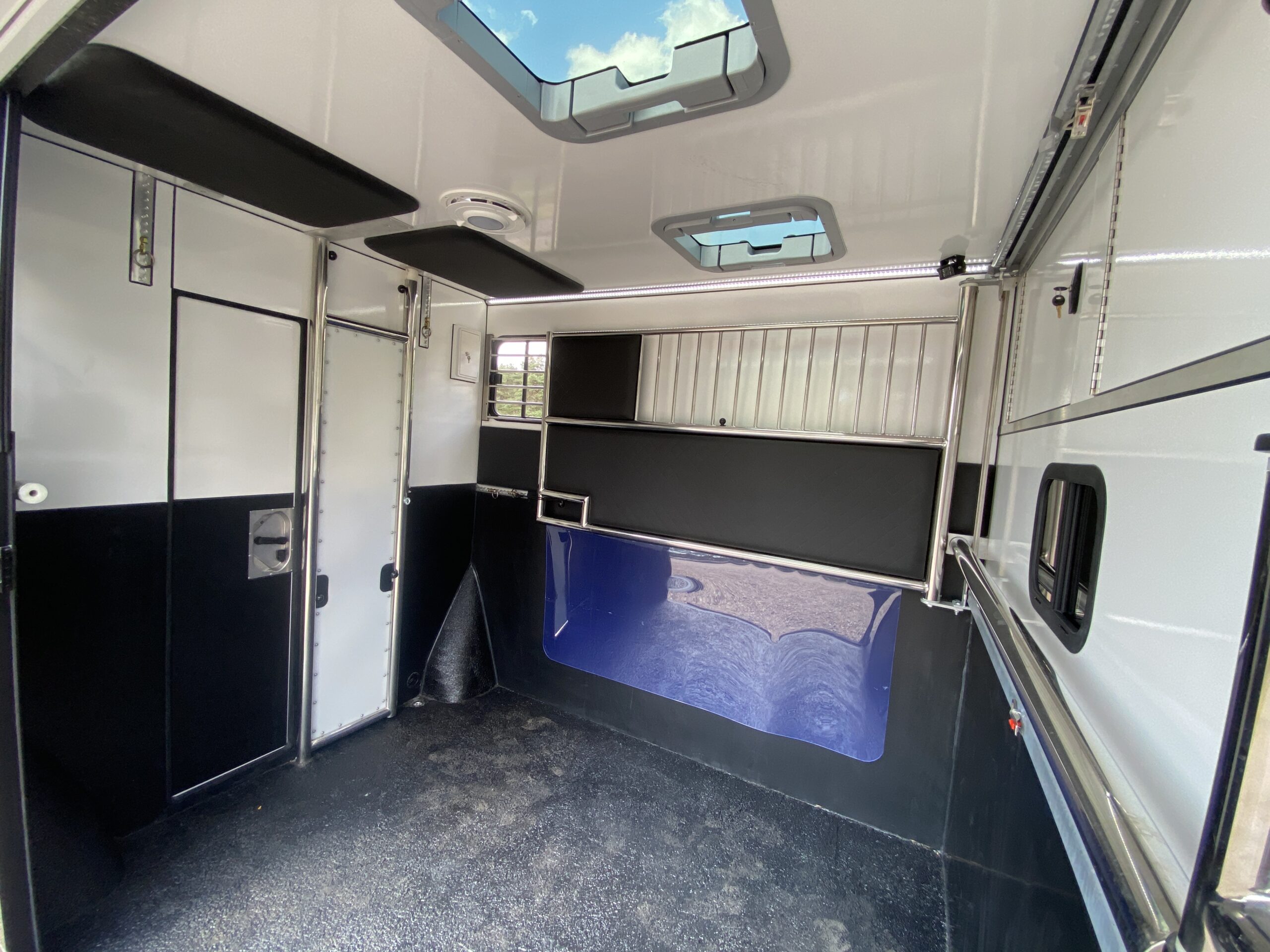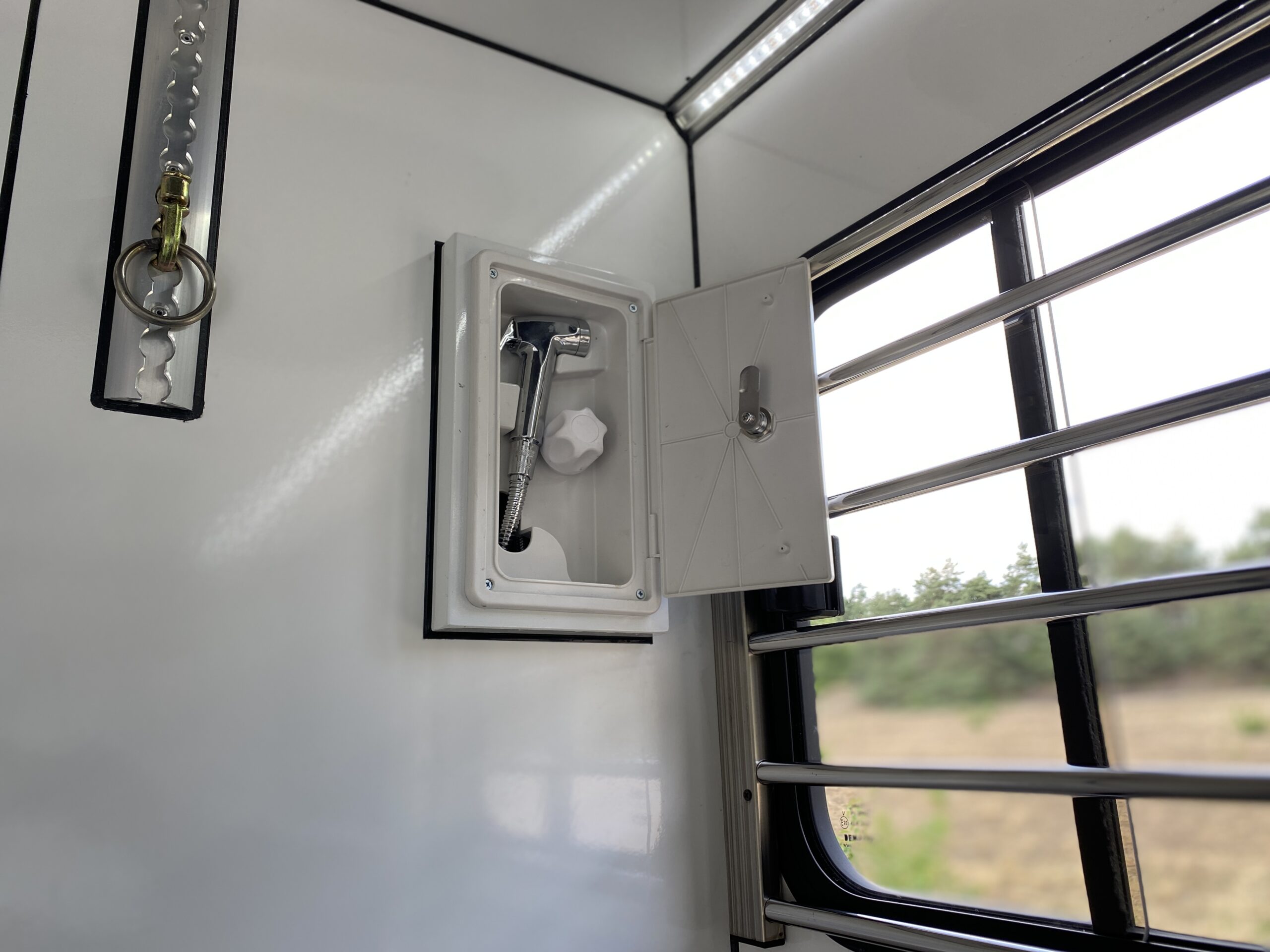 De Mercedes Sprinter Grand Weekender biedt plaats aan twee paarden in een ruim en goed geventileerd paardengedeelte. De veiligheid van jouw paarden is van het grootste belang, daarom hebben we deze paardenvrachtwagen uitgerust met het Pro-Safety pakket voor maximale bescherming.